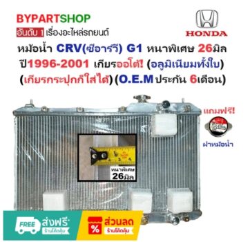 หม้อน้ำ Honda CR‑V Gen 1 (1996–2001) รุ่นหนาพิเศษ 26 มม. ผลิตจาก อลูมิเนียมทั้งใบ แข็งแรง ทนความร้อนสูง ระบายความร้อนได้ดี ติดตั้งแทนของเดิมได้ทันที รองรับทั้งเกียร์ออโต้และเกียร์ธรรมดา มาตรฐาน O.E.M ISO9001 / ISO14001