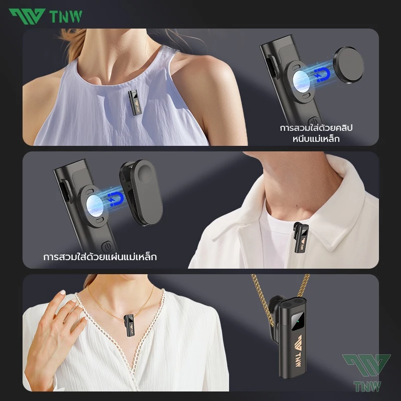 TNW ใส่ชิปตัดเสียง DSP+AI รุ่นล่าสุดเข้ามา ทำให้เสียงพูดคมชัดขึ้นอย่างเห็นได้ชัด ผสานกับฟองน้ำกันลมและตัวกรองลมแม่เหล็กที่แถมมา ช่วยลดเสียงลม เสียงจอแจ และเสียงรบกวนรอบข้างได้ดีมาก เหมาะกับการไลฟ์ในตลาด ร้านอาหาร หรือกลางแจ้งโดยเฉพาะ